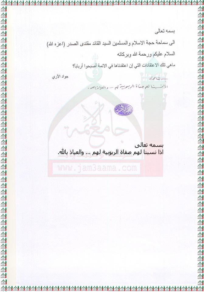 الاعتقادات الباطلة في الائمة صلوات الله عليهم(استفتاء للسيد القائد بتاريخ27-7-2011)