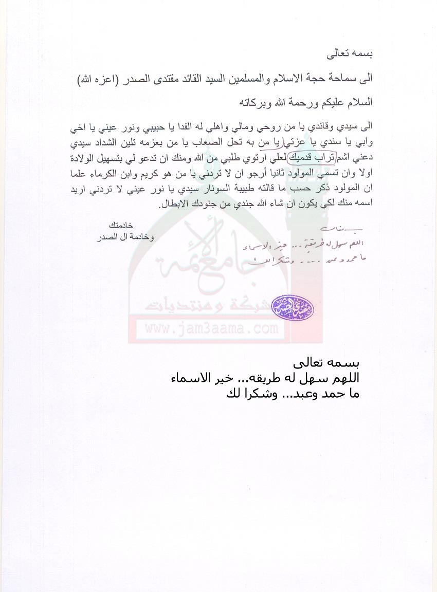 طلب الدعاء من سماحته لاحدى المؤمنات(استفتاء للسيد القائد بتاريخ28-7-2011)