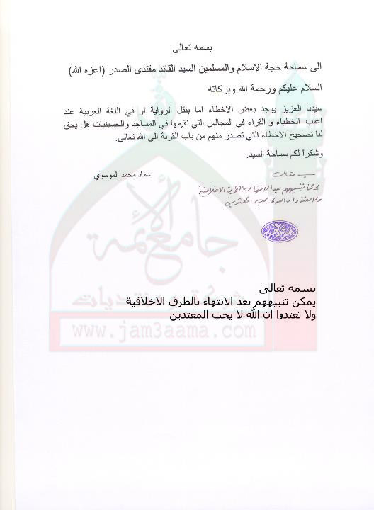 تصحيح بعض الأخطاء للخطباء (إستفتاء السيد القائد مقتدى الصدر ليوم 2 آب 2011)