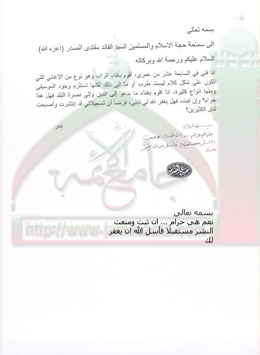مطرب يطلب التوبة (إستفتاء السيد القائد مقتدى الصدر أعزه الله 7-8-2011 )