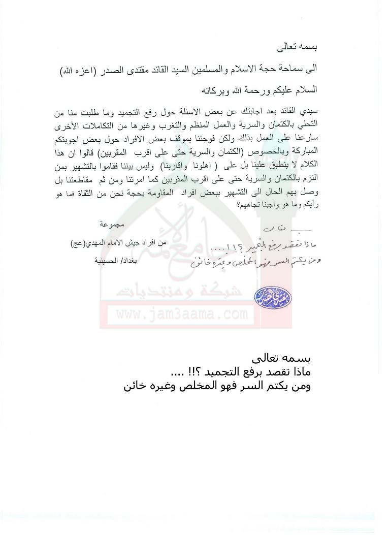 من يكتم الستر فهو المخلص وغيره خائن(استفتاء للسيد القائد مقتدى الصدر اعزه الله بتاريخ11-8-2011)