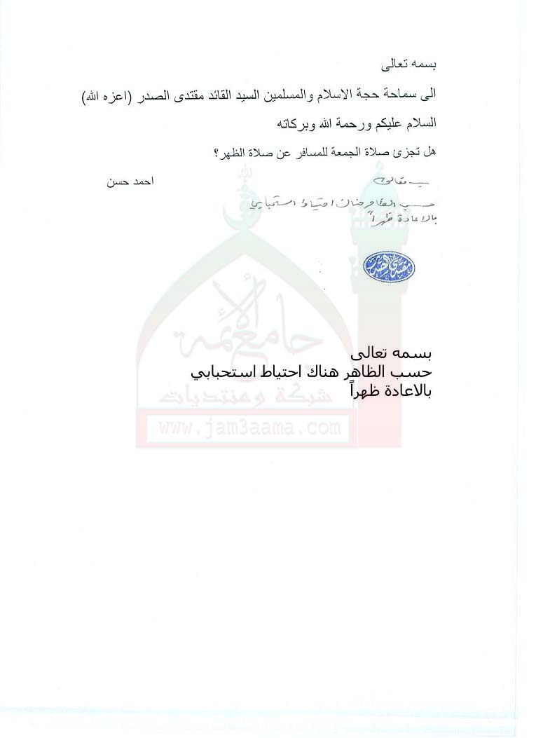 حسب الظاهر هناك احتياط استحبابي في الاعادة ظهرا لمن صلى الجمعة في حال السفر (استفتاء للسيد القائد مقتدى الصدر اعزه الله بتاريخ11-8-2011)