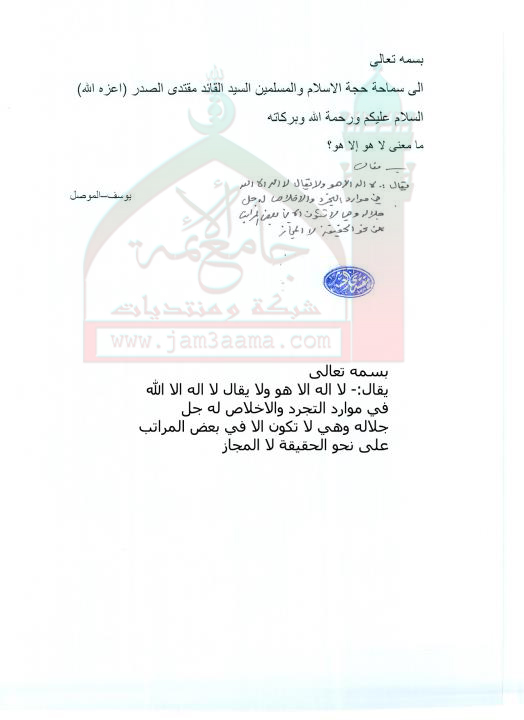 معنى:لا هو الا هو(استفتاء للسيد القائد مقتدى الصدر اعزه الله بتاريخ12-8-2011)