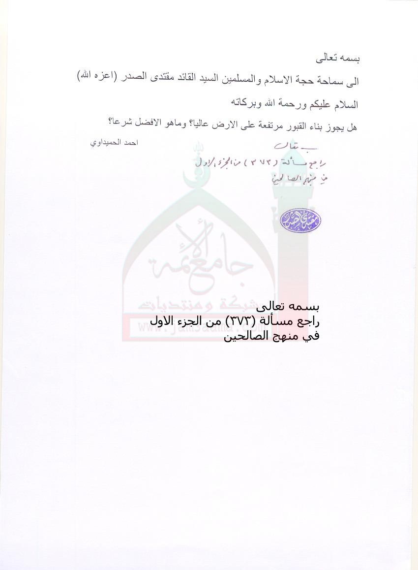 ارتفاع القبور(استفتاء للسيد القائد مقتدى الصدر اعزه الله بتاريخ 13-8-2011)