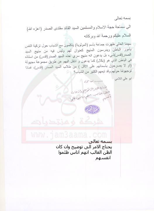 (جماعة المولوية),الظن الغالب انهم اناس ظلموا انفسهم(استفتاء للسيد القائد مقتدى الصدر اعزه الله بتاريخ 16-8-2011)