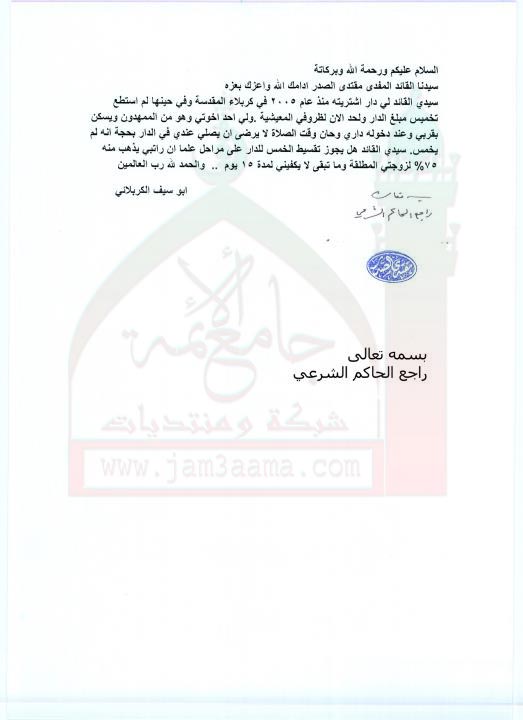 تخميس دار(استفتاء للسيد القائد مقتدى الصدر اعزه الله بتاريخ17-8-2011)