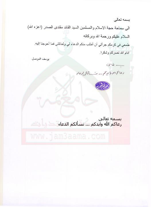 طلب الدعاء لاحد المؤمنين بالرعاية والتاييد الالهي(استفتاء للسيد القائد مقتدى الصدر اعزه الله بتاريخ17-8-2011)