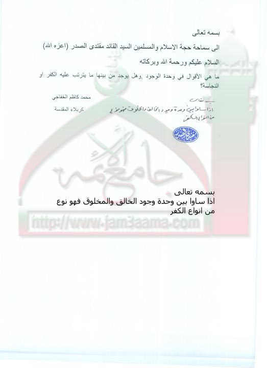 الاقوال الموجودة في قاعدة وحدة الوجود استفتاء السيد القائد مقتدى الصدر أعزه الله 20 - 8 - 2011