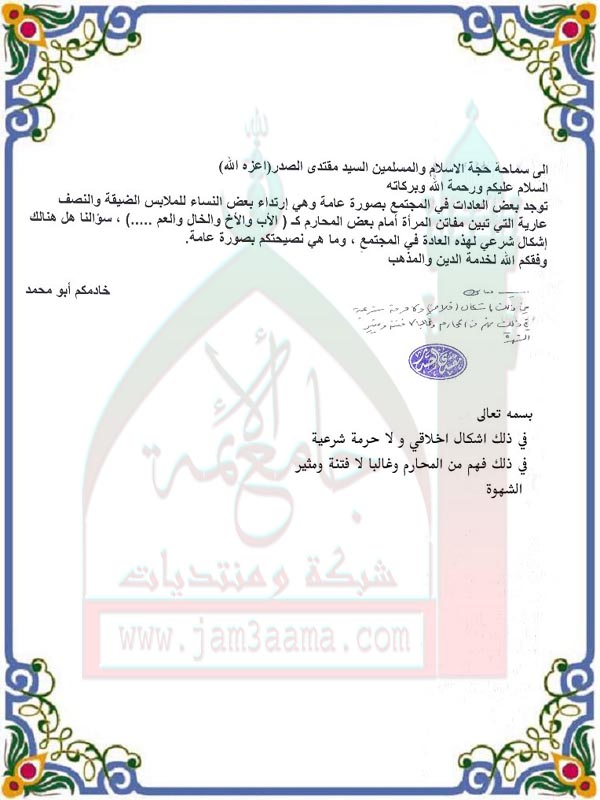 لبس الضيق لمن تدّعي التحجب(استفتاء للسيد القائد بتاريح 16-12-2010)