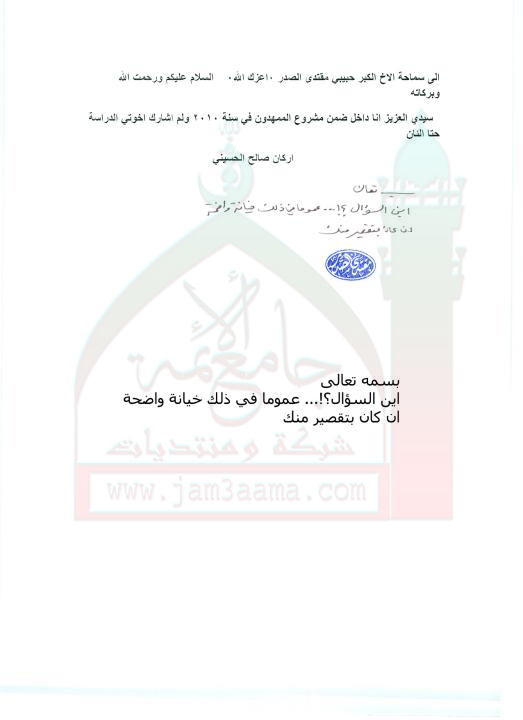 الدراسة ضمن مشروع الممهدون ( استفتاء للسيد القائد مقتدى الصدر اعزه الله بتاريخ 24-8-2011)