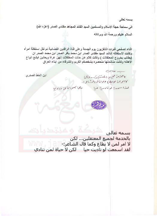 انا بالخدمة لجميع المعتقلين( استفتاء للسيد القائد مقتدى الصدر اعزه الله بتاريخ 26-8-2011)