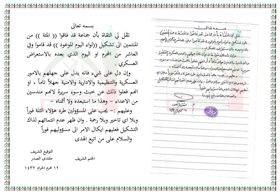 بيانات واستفتاءات السيد القائد مقتدى الصدر نصره الله
