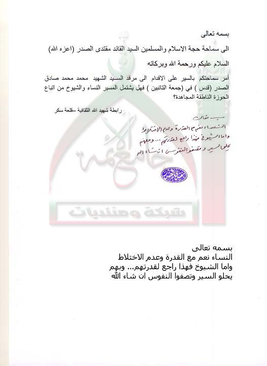 مسير النساء والشيوخ في جمعة التائبين ( استفتاء للسيد القائد مقتدى الصدر اعزه الله بتاريخ 31-8-2011 )