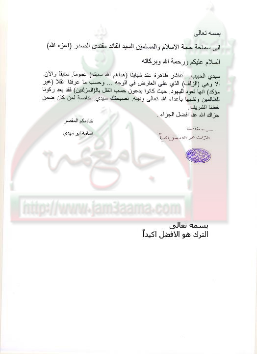 حكم ظاهرة ( الزلف ) عند الشباب استفتاء للسيد القائد مقتدى الصدر ( اعزه الله ) بتاريخ 4-9-2011