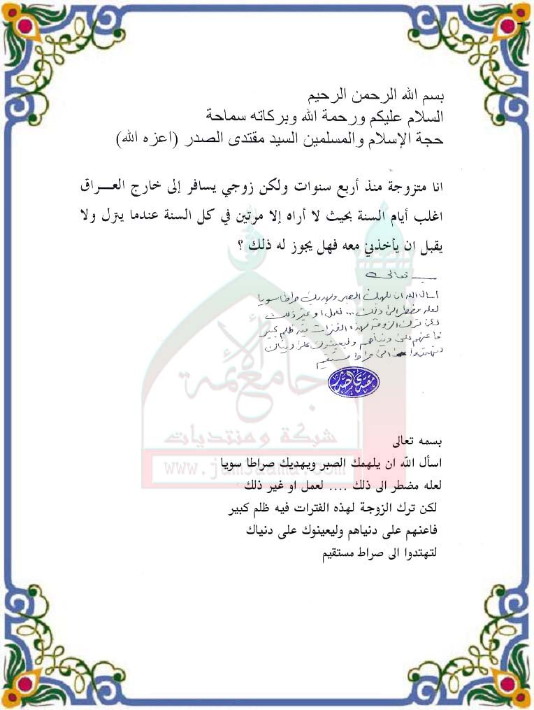 امراة لا ترى زوجها من كثرة السفر(استفتاء للسيد القائد بتاريخ 24-12-2010)