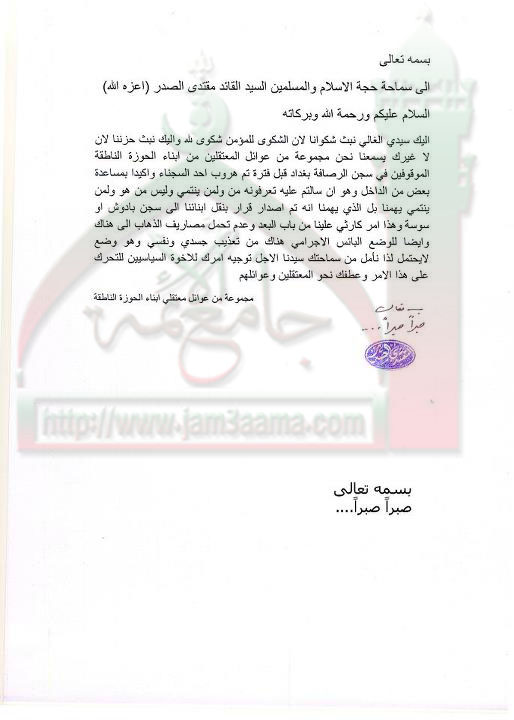 نقل معتقلي سجن الرصافة الى بادوش ( استفتاء للسيد القائد مقتدى الصدر اعزه الله بتاريخ 19-9-2011)