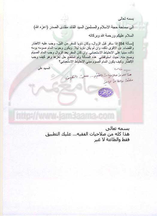 الافتاء من صلاحيات الفقيه...عليك التطبيق فقط والطاعة لا غير ( استفتاء للسيد القائد مقتدى الصدر اعزه الله بتاريخ 20-9-2011)