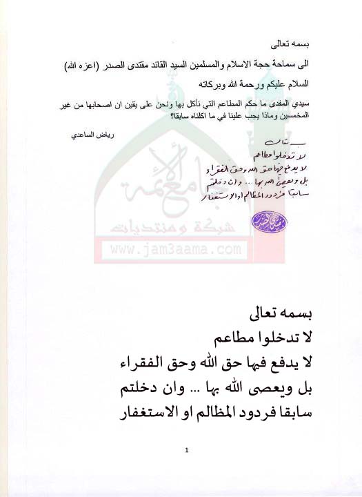 اصحاب مطاعم غير مخمسين استفتاء للسيد القائد مقتدى الصدر بتاريخ 9\10\2011
