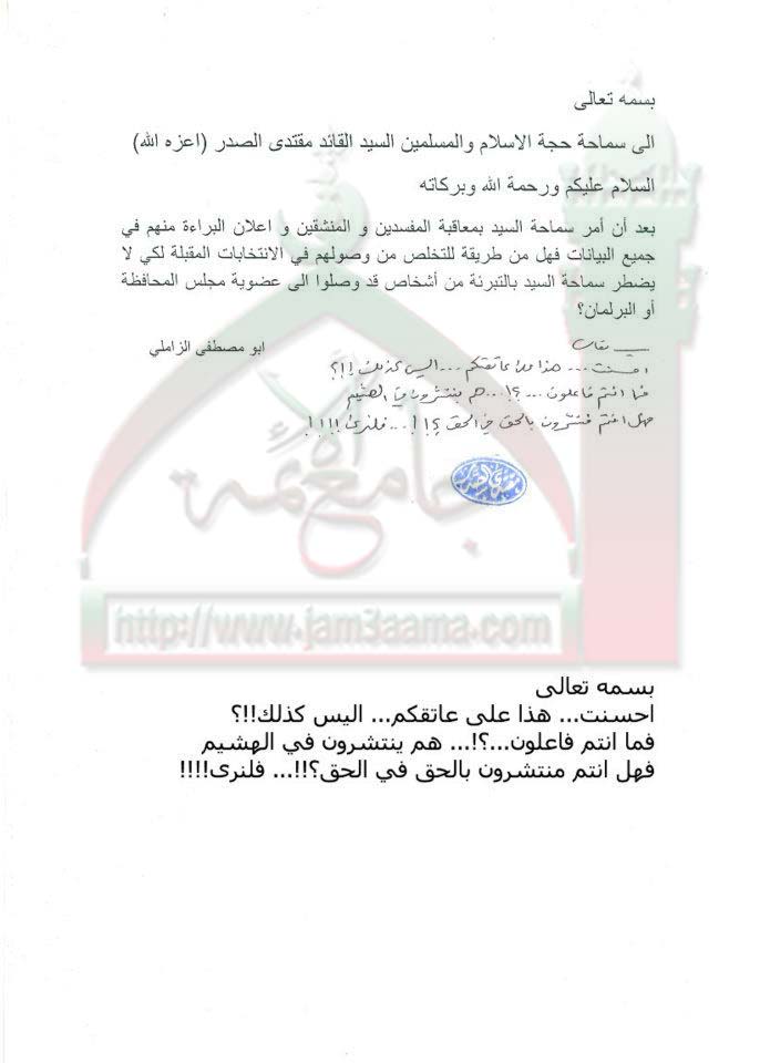 طريقة التخلص من وصول المفسدين والمنشقين الى عضوية مجلس المحافظة او البرلمان في الانتخابات المقبلة ! استفتاء للسيد القائد مقتدى الصدر اعزه الله 20-10-2011