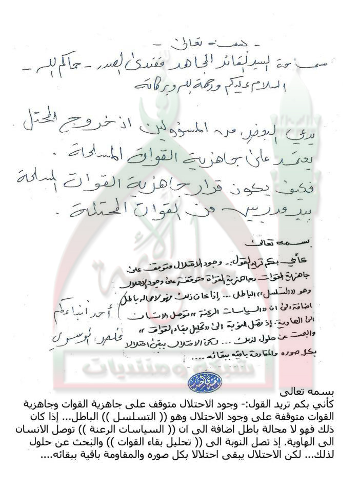 القول بان "بقاء قوات الاحتلال متوقف على جهوزية القوات الامنية" استفتاء للسيد القائد مقتدى الصدر اعزه الله 24-10-2011