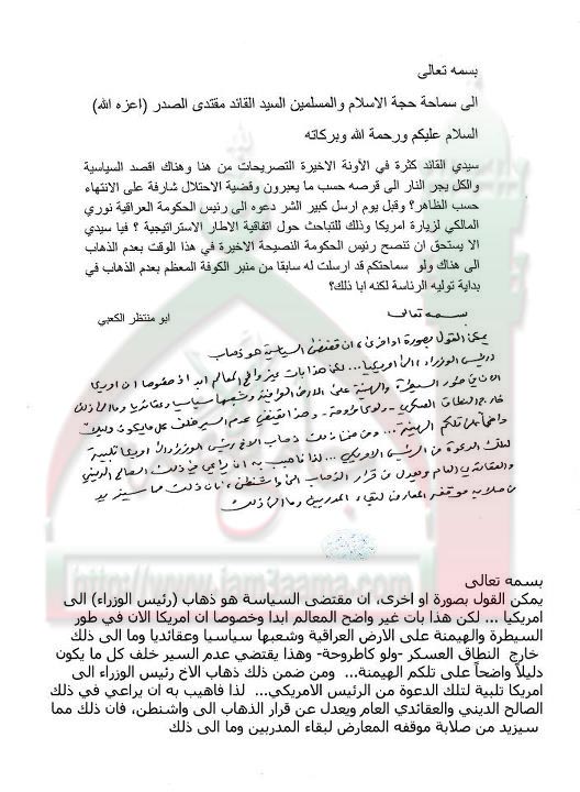 دعوة( اوباما ) رئيس الوزارء نوري المالكي لزيارة امريكا استفتاء للسيد القائد مقتدى الصدر اعزه الله 28 - 10 - 2011