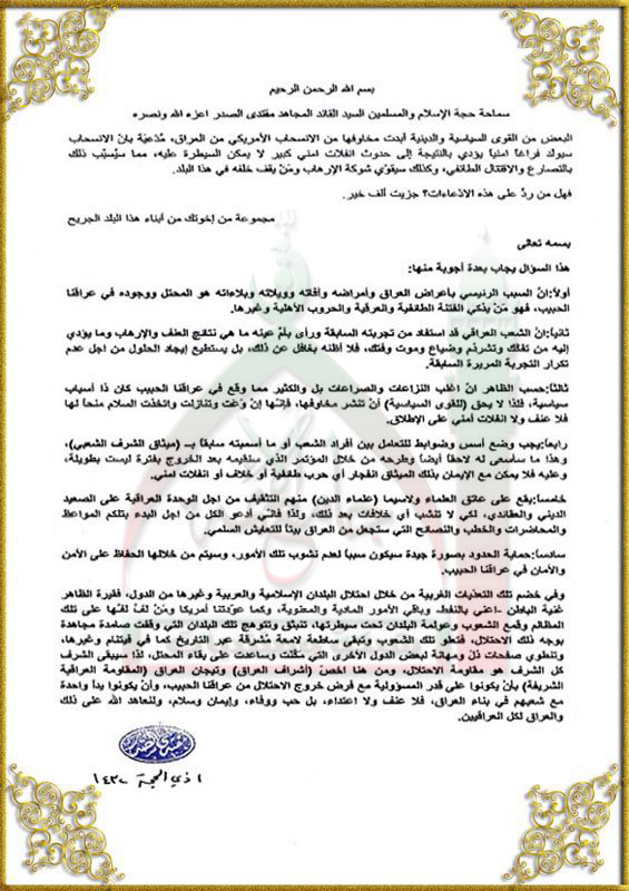 بيانات واستفتاءات السيد القائد مقتدى الصدر نصره الله
