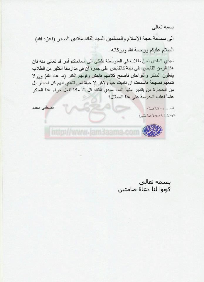 الامر بالمعروف والنهي عن المنكر في المدارس استفتاء للسيد القائد مقتدى الصدر اعزه الله 30 - 10 - 2011
