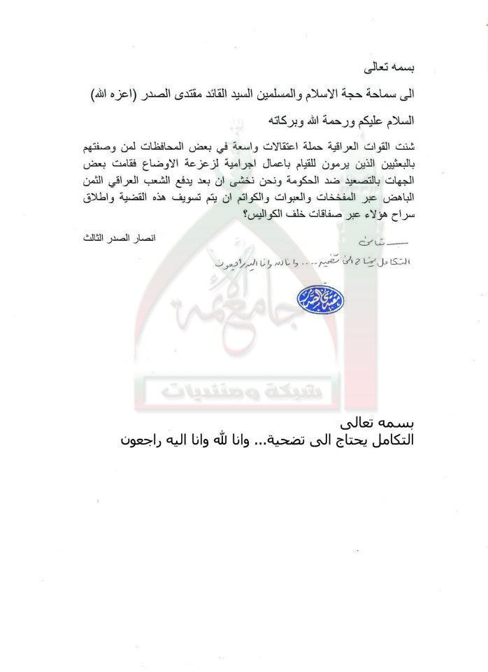 بيانات واستفتاءات السيد القائد مقتدى الصدر نصره الله
