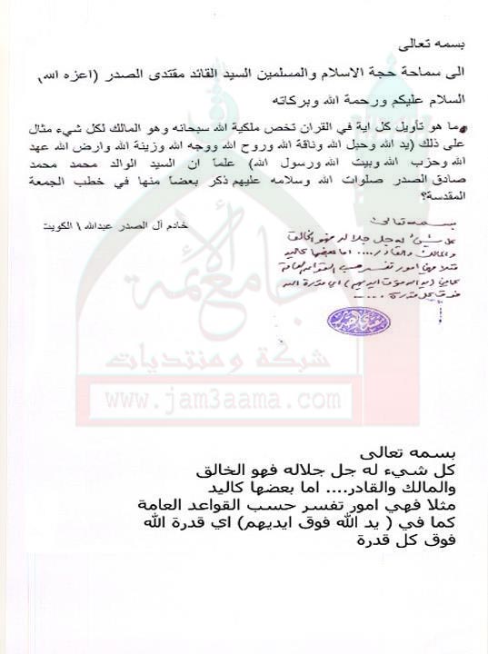 تاويل الايات القرانية التي تخص ملكية الله سبحانه استفتاء للسيد القائد مقتدى الصدر اعزه الله 2 - 11 - 2011