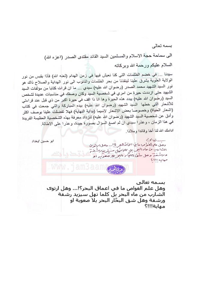 وصف شخصية السيد الشهيد الصدر الثاني-قد- استفتاء للسيد القائد مقتدى الصدر اعزه الله 4 - 11 - 2011