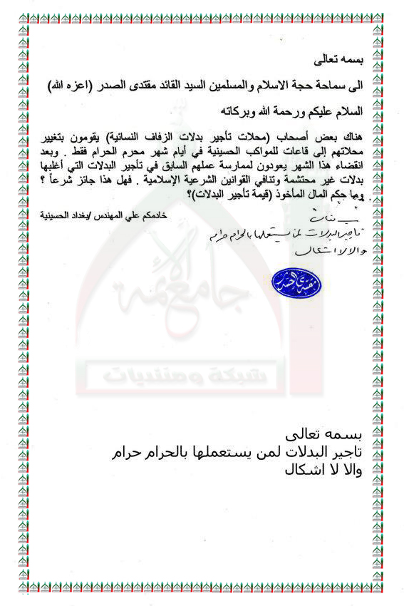 تاجير بدلات الزفاف النسائية استفتاء للسيد القائد مقتدى الصدر 5 - 11 - 2011