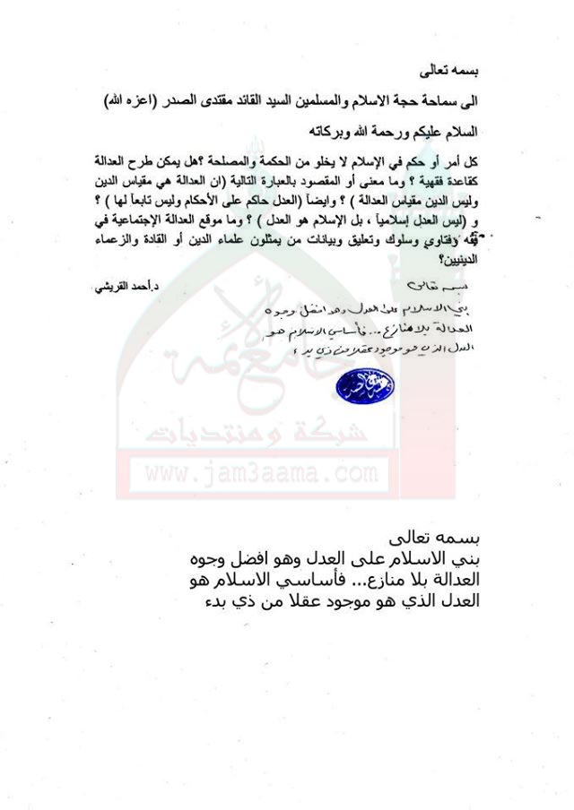 العدالة الاجتماعية استفتاء للسيد القائد مقتدى الصدر اعزه الله 7 - 11 - 2011