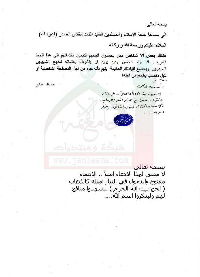 الانتماء للخط الصدري الشريف استفتاء للسيد القائد مقتدى الصدر اعزه الله 7 - 11 - 2011