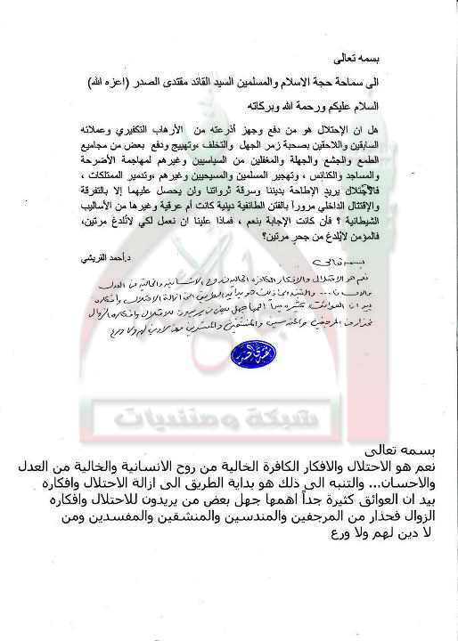 قوات الاحتلال وما تقوم به من اعمال تخريبية استفتاء للسيد القائد مقتدى الصدر اعزه الله 8 - 11 - 2011
