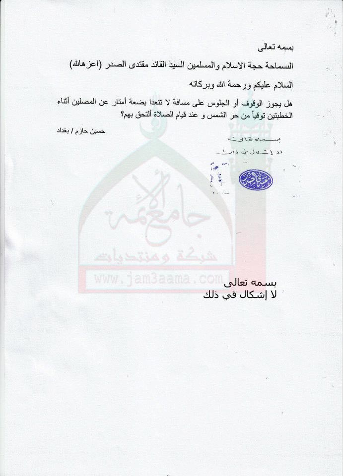 الوقاية من حر الشمس اثناء خطبتي الجمعة استفتاء السيد القائد مقتدى الصدر 9 _ 11 _ 2011