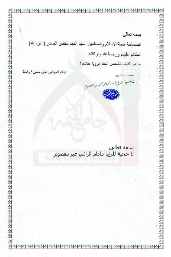 تكليف الفرد أتجاه الرؤيا استفتاء السيد القائد مقتدى الصدر أعزه الله 11-11-2011
