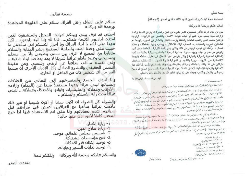بيانات واستفتاءات السيد القائد مقتدى الصدر نصره الله
