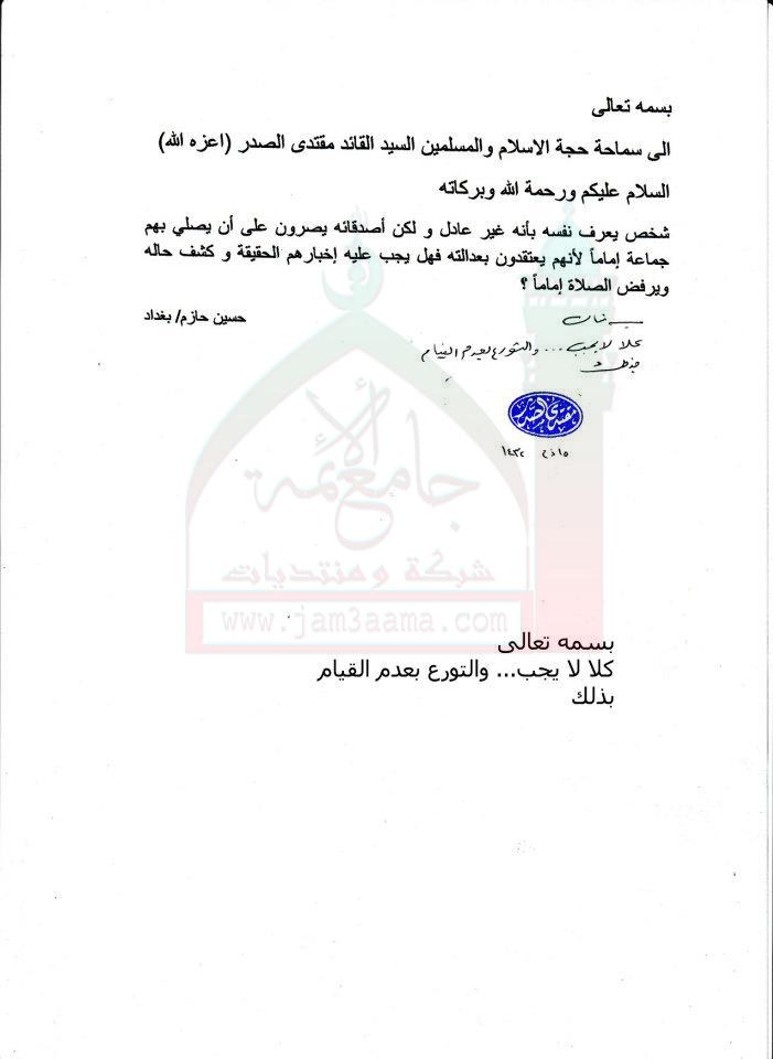 عدالة امام الجماعة استفتاء السيد القائد مقتدى الصدر أعزه الله 12-11-2011