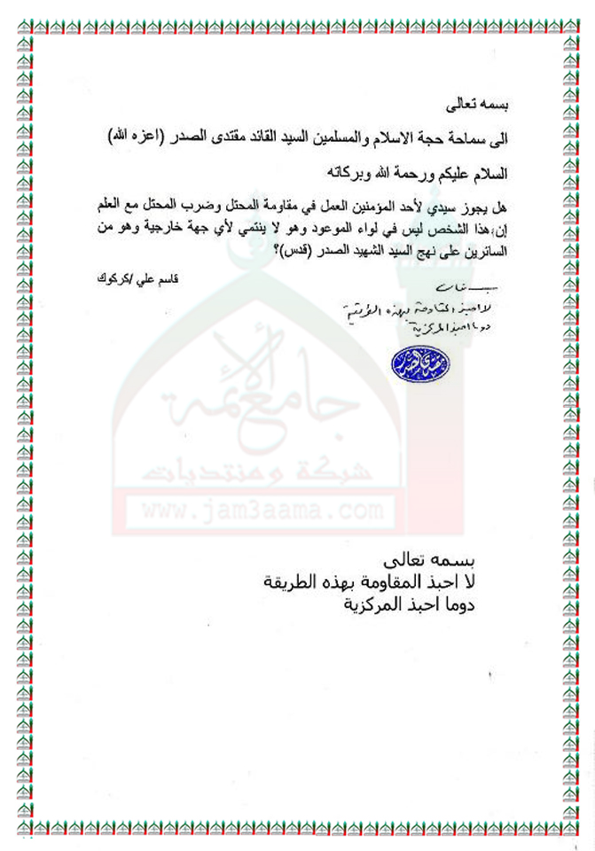 المركزية في مقاومة المحتل استفتاء للسيد القائد مقتدى الصدر اعزه الله 22- 11 - 2011