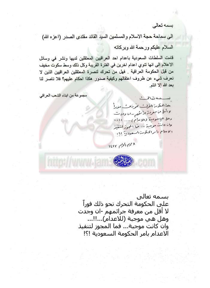 اعدام السلطات السعودية لاحد العراقيين استفتاء السيد القائد مقتدى الصدر اعزه الله 4- 12 - 2011