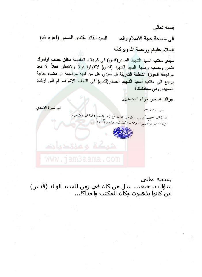 مركزية المكتب الشريف في النجف الاشرف استفتاءالسيد القائد مقتدى الصدر اعزه الله 8 -12 -2011