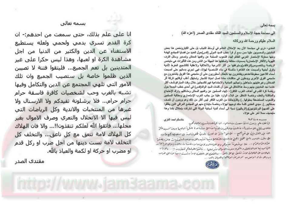 محاولة الاستعمار الغربي الهاء الشعوب بكرة القدم والرياضة عموما استفتاء السيد القائد مقتدى الصدر اعزه الله 8 - 12 - 2011