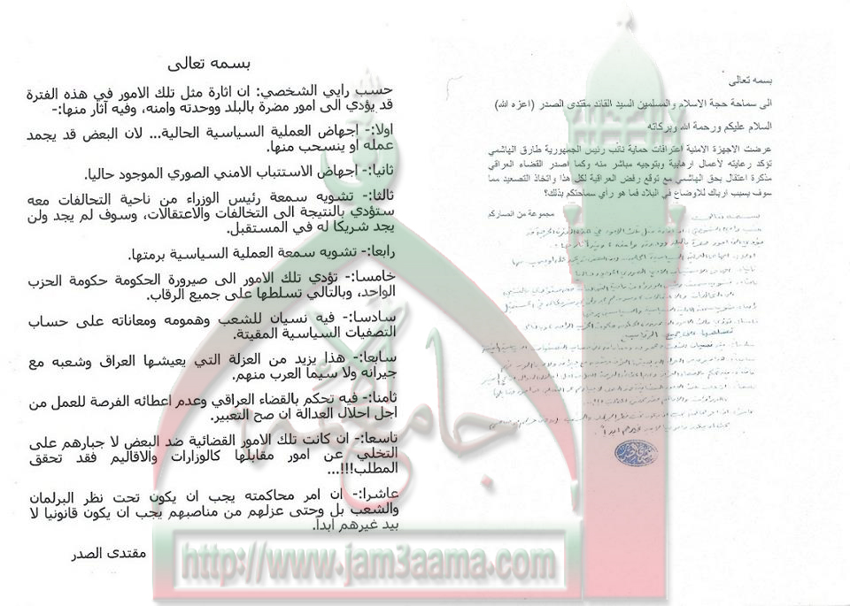 اعترافات حماية طارق الهاشمي استفتاء السيد القائد مقتدى الصدر اعزه الله 23-12-2011