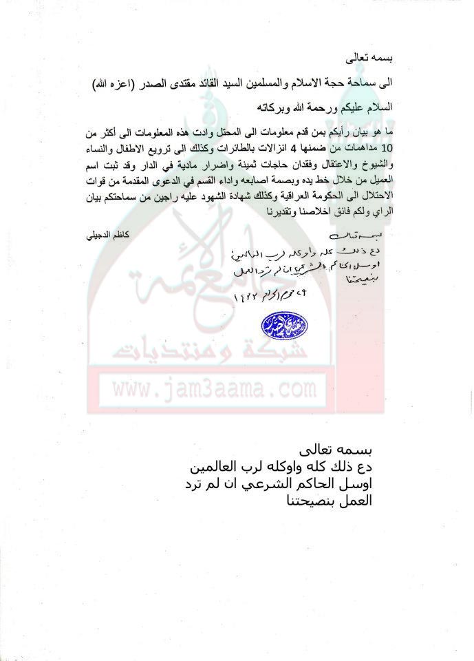 الوشاية بالمؤمنين لدى قوات الاحتلال استفتاء السيد القائد مقتدى الصدر اعزه الله 26 - 12 - 2011