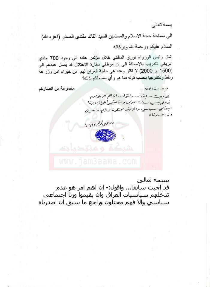 بقاء الاف من قوات الاحتلال بعد الانسحاب المزعوم استفتاء السيد القائد مقتدى الصدر اعزه الله 26 - 12 - 2011