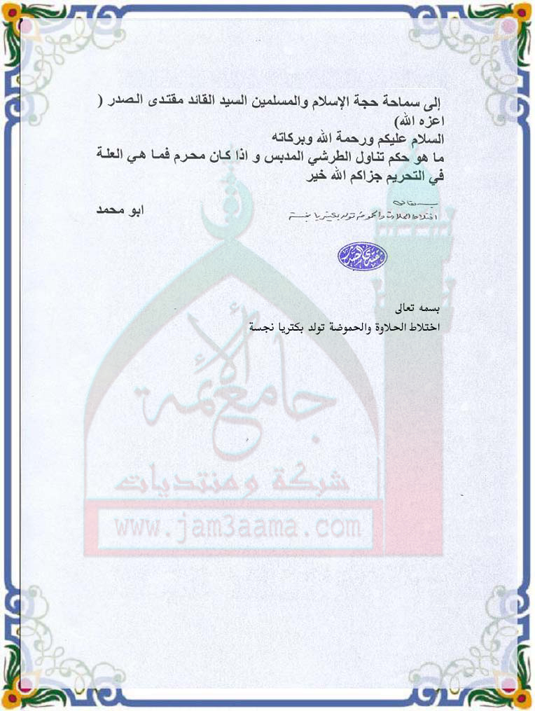 استفتاء السيد القائد مقتدى الصدر اعزه الله حول الطرشي المدبس