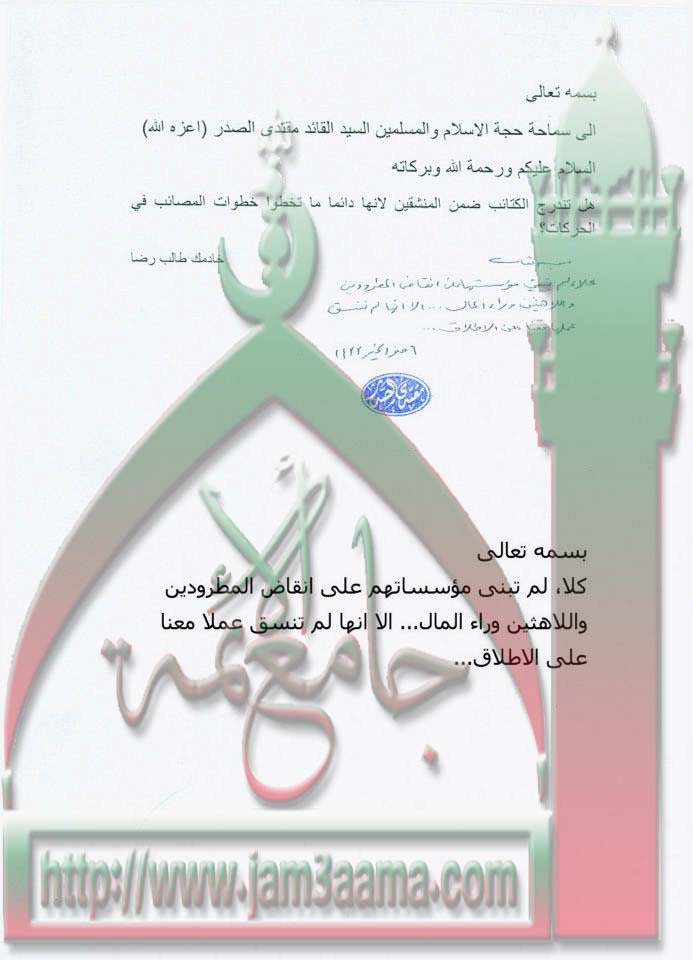 كتائب حزب الله لم تنسق عملا معنا على الاطلاق استفتاء السيد القائد مقتدى الصدر اعزه الله 1 - 1 - 2012