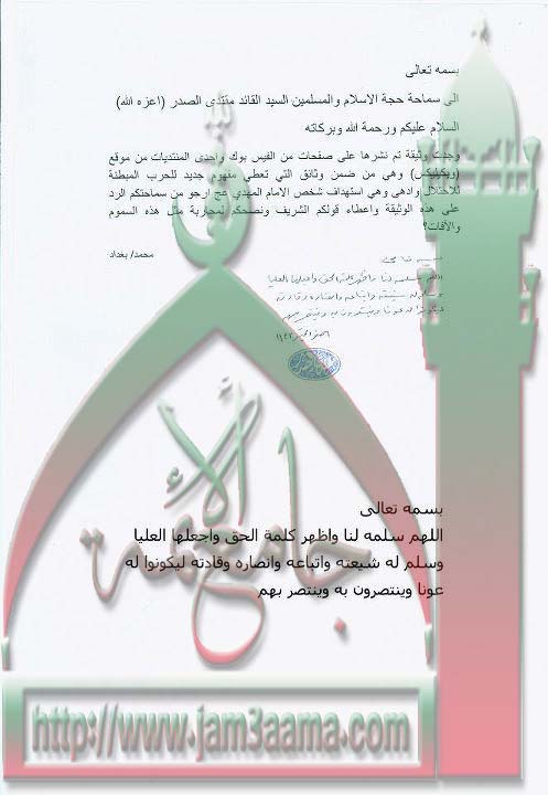 وثيقة من موقع ويكيليكس تبين استهداف الاحتلال للامام المهدي ع استفتاء السيد القائد مقتدى الصدر اعزه الله 1 - 1 - 2012