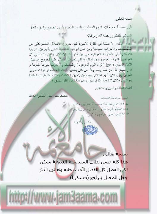 ادّعاء من هب ودب باخراج الاحتلال من العراق استفتاء السيد القائد مقتدى الصدر اعزه الله 1 - 1 - 2012