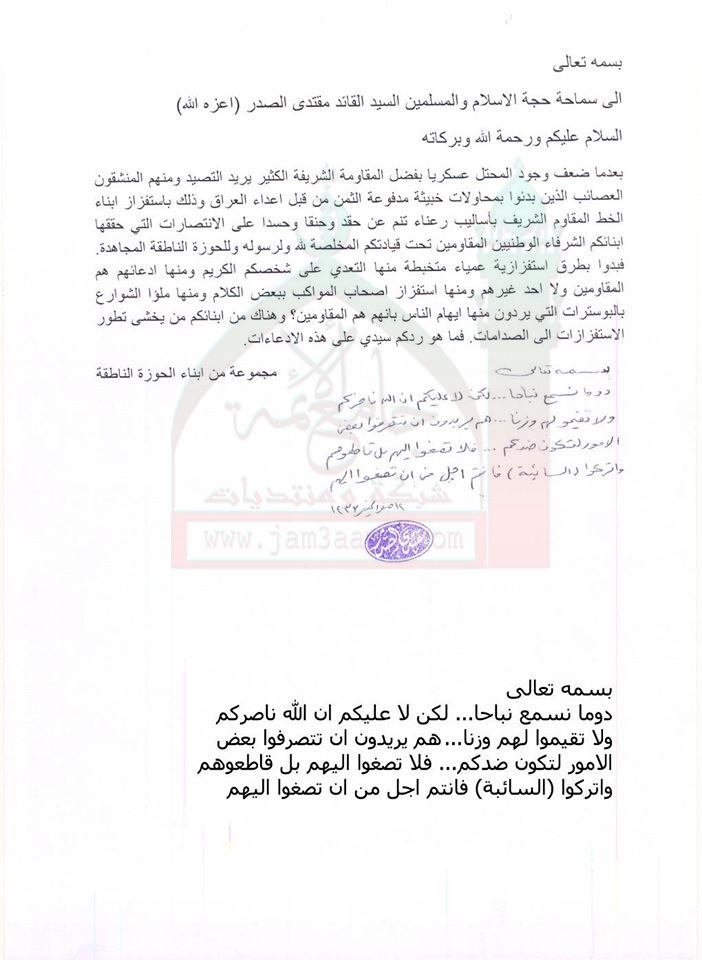 استفزازات العصائب الاخيرة استفتاء السيد القائد مقتدى الصدر اعزه الله 7 - 1 - 2012